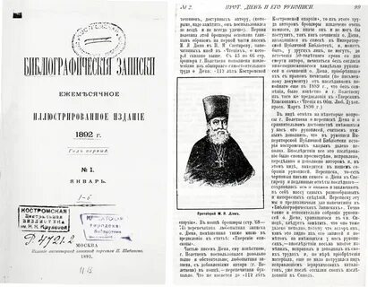 [31] Описание библиотеки Кафедрального Успенского собора // Костромские губернские ведомости (далее — КГВ). 1858. №27. 12 июля. С. 264: