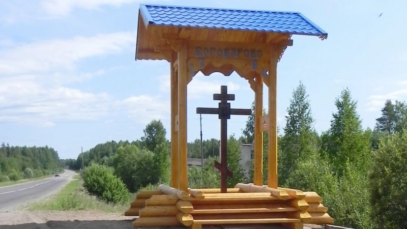 Крест – точная копия прежнего, что стоял в с. Боговарово около 20 лет назад. Крест был освящён в большой праздник – в День святых апостолов Петра и Павла 12 июля 2021 года, который здесь также считается и Днём села. Установили конструкцию на плитах вблизи проезжей части. Причём так, чтобы зимой основание креста не засыпало при расчистке либо посыпке шоссе. Как и прежде, теперь поклонный крест будет служить верующим напоминанием – сотворить молитву о благополучной дороге.