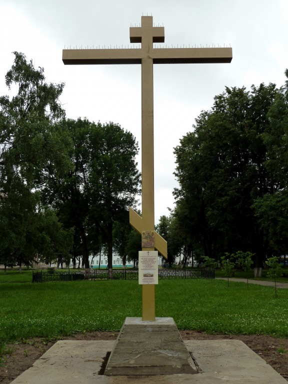 Поклонный крест, установленный 28 августа 2014 на месте разрушенного Успенского собора и Костромского Кремля. Храм закрыт в 1929, взорван в 1934. На месте храма парк В.И Ленина.