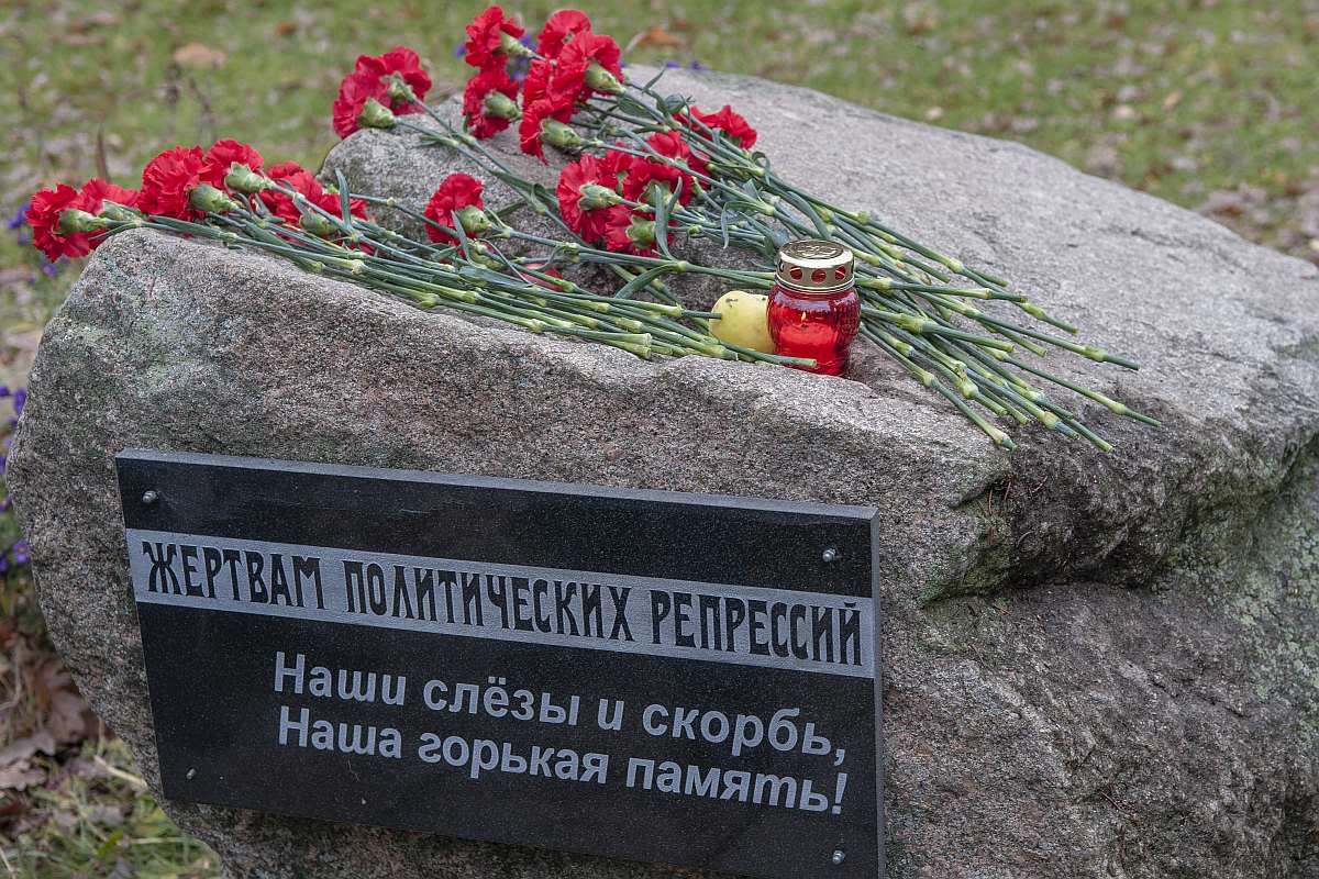 По окончании чтения имен желающие поехали поставить свечи и возложить цветы к памятному знаку жертвам репрессий на площади Мира.