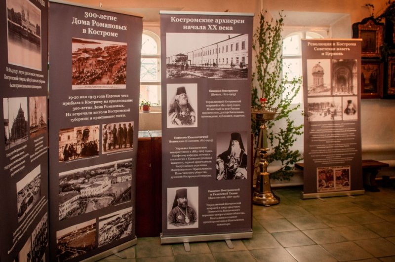 Выставочная деятельность. Выставка «Костромская Голгофа» создана Костромским церковно-историческим обществом на протяжении ряда лет демонстрировалась в Костроме, Буе, Галиче, Нерехте, Солигаличе, Судиславле и Шарье. Основу выставки составляют краеведческие материалы, повествующие о репрессиях против священнослужителей и мирян Костромской губернии в 1917-1953 годах. В наступившем 2025 году выставка посетила Свято-Тихоновский приход г. Костромы (2 февраля) и духовно-просветительский центр Костромской епархии «Агапа» (10 февраля), 23 февраля презентация выставки состоялась в храме Иоанна Кронштадтского и святителя Амвросия Медиоланского и, 12 марта, в Духовно-просветительском центре «Кострома». В Богоявленском кафедральном соборе Костромского кремля открытие выставок благословил митрополит Костромской и Нерехтский Ферапонт. В тот же день в верхнем храме собора пребывала частица мощей Святителя Патриарха Тихона. Выставку «Время святителя Тихона: «Устрояйте духовные союзы»» представил кандидат педагогических наук, ректор Свято-Филаретовского института Александр Копировский. Выставку «Костромская Голгофа» представит ее автор – кандидат богословия, председатель Костромского церковно-исторического общества, настоятель Пантелеимоновско-Елисаветинского храма Костромы протоиерей Дмитрий Сазонов. В открытии приняли участие костромские священники, историки и краеведы.