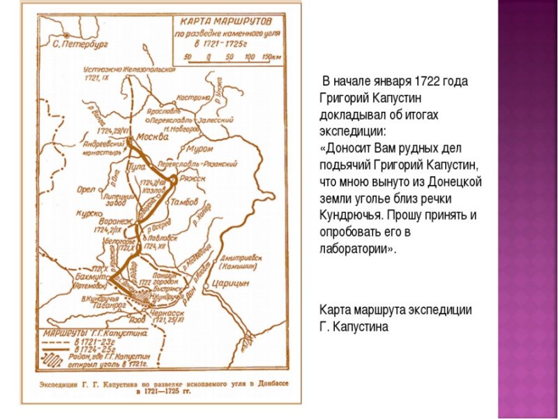 В результате Капустин был поддержан Петром I, высоко оценившим находки угля на Дону и Северском Донце. В 1723 году император распорядился: «Туда, где приискал Капустин уголья послать нарочных для осмотра и сыска каменного угля».
